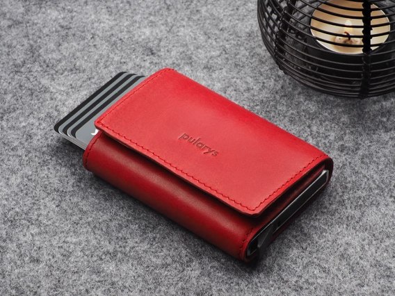 Ten portfel wykonany jest ze skóry naturalnej z aluminiowym etui na karty płatnicze oraz mechanizmem wysuwania kart. Produkt został zaprojektowany z myślą o codziennym użytkowaniu, jednak zawiera elementy, które wymagają zachowania ostrożności.