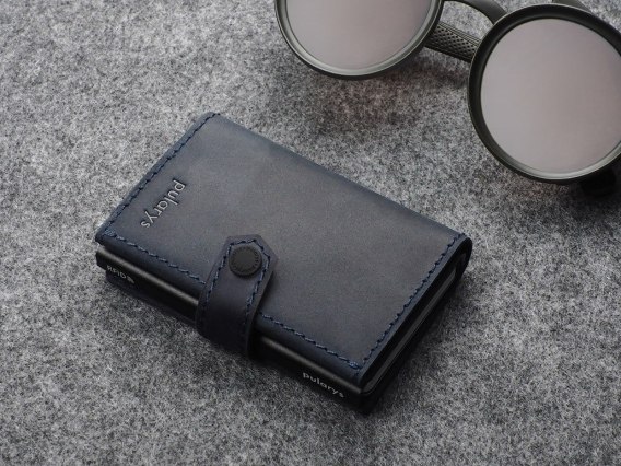 Ten portfel wykonany jest ze skóry naturalnej z aluminiowym etui na karty płatnicze oraz mechanizmem wysuwania kart. Produkt został zaprojektowany z myślą o codziennym użytkowaniu, jednak zawiera elementy, które wymagają zachowania ostrożności.