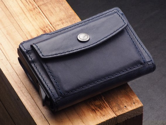 Ten portfel wykonany jest ze skóry naturalnej z aluminiowym etui na karty płatnicze oraz mechanizmem wysuwania kart. Produkt został zaprojektowany z myślą o codziennym użytkowaniu, jednak zawiera elementy, które wymagają zachowania ostrożności.